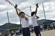 最初の種目では入場行進から引き締まった表情で堂々と歩き、最後の種目であるマスゲームまで全力でやり遂げる姿が見られました。得点種目の競技では、仲間と力を合わせて取り組みました。応援にも熱が入り、大いに盛り上がりました。生徒たちの笑顔や真剣な姿勢が、体育祭をより一層輝かせてくれました。