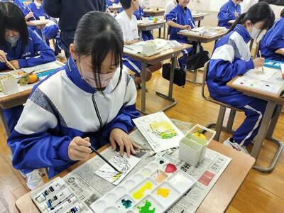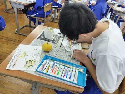 本日の5・6時間目に、1年生を対象とした絵手紙教室が行われました。