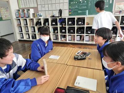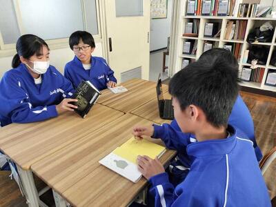 生徒たちは自分が読んで面白かった本や、ぜひ友達にも読んでほしいと思う本を1冊選び、その魅力を班の仲間に紹介しました。