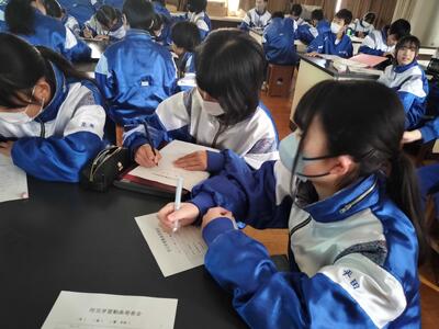 今日の6時間目に1年生で防災学習のまとめを行いました。