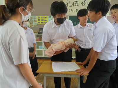 今年は、やぎ助産院の助産師・八木典子先生をお招きしました。3時間目には「心」と「命」の大切さについてお話をしていただきました。これから大人へと成長していく中学生にとって、今だからこそ知っておくべき大切なことをたくさん学ぶことができました。