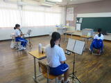 1年生の教室からは、パワフルで元気の出る歌声が廊下まで響いていました。パートごとに分かれて練習を進めたあと、全体での通し練習を行い、まとまりのある歌声を目指しているようすが見られました。