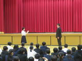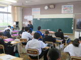交通安全教室の中では警察の方からは「交通ルールを守ることは自分の命を守ることであり、周囲の人を悲しませないためにも絶対に必要である」と教えていただきました。また、交通のことだけでなく、インターネット上の見知らぬ人を安易に信用しないこと」と「悪い誘惑には流されず、きっぱりと断る強い心を持つこと」についても話していただき、生徒が様々な犯罪やトラブルにも巻き込まれないように注意喚起していただきました。