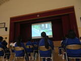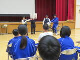 本日、1年生が交通安全教室を行いました。雨だったため、体育館でDVDを視聴したり、実演から交通ルールや自転車の点検について学びました。